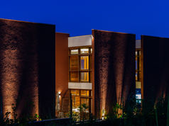 Por outro lado, a distribuição destes planos fragmentados ajuda a organizar e gerar privacidade para os ambientes internos, criando a presença constante de pátios e direcionando as aberturas para norte e sul, aproveitando a vista da cidade de Sobral na fachada frontal e da Serra da Meruoca na fachada dos fundos. Os fechamentos perpendiculares aos planos principais se dão com paredes e esquadrias de madeira tipo veneziana e vidro, a depender da necessidade do espaço, garantindo que, mesmo parecendo fechada por fora, as vistas de dentro sejam garantidas. Esse contraponto entre planos opacos e vedações é reforçado pela textura avermelhada dos planos, em contraponto à pintura branca, madeira e vidro presentes nas vedações das fachadas norte e sul.